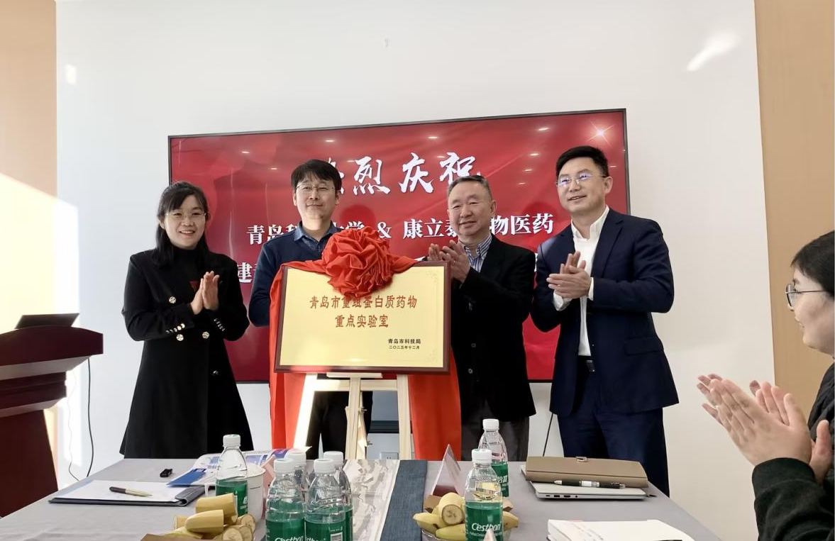 近日,betway西汉姆联官方官网抗体工程与工程微生物研究团队与康立泰生物医药(青岛)有限公司联合申报的“青岛市重组蛋白质药物重点实验室”揭牌仪式举行。团队负责人顾玉超、康立泰执行总经理王建刚、首席战略科学家吴长有以及实验室核心成员参加了揭牌仪式并进行了深度交流。