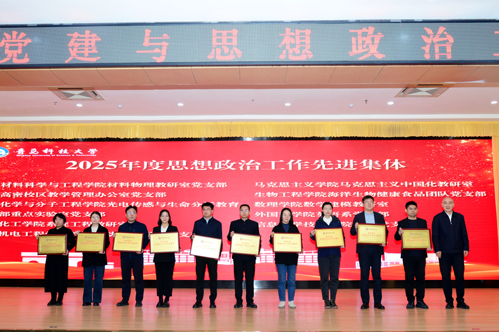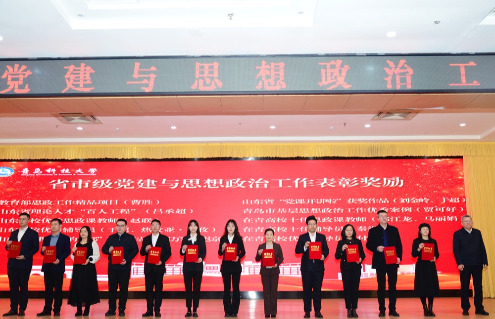 会上,党委书记杨天梅为获得省市级党建与思想政治工作表彰奖励人员颁奖。其中,海洋健康食品团队党支部书记解万翠的作品《向海图强 产业报国》获评山东省“我和我的支部”二等奖;学工办副主任刘金岭的作品《赓续红色基因 熔铸橡胶品格》获山东省“党课开讲啦”一等奖;学工办主任秦洪庆获评在青高校“十佳辅导员”。