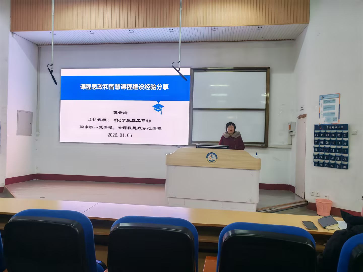 分享会上,张青瑞教授结合自身多年教学改革实践,结合国家政策导向与实际授课案例,从课程思政融入专业教学、智慧课程平台搭建与应用等方面,系统阐述了课程思政建设的设计思路与实施路径。她指出,课程思政并非简单的思政元素堆砌,而是要立足专业课程特点,精准挖掘蕴含其中的思政素材。同时,她具体展示了如何利用人工智能软件优化化工过程实验教学,如何通过线上互动工具实现课堂精准化教学与个性化辅导。