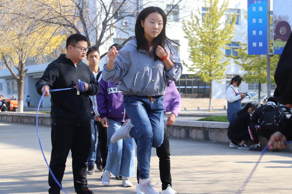 本次活动规则是统计一分钟内班级跳大绳个数,个数最多的班级获胜。在活动开始前一周,同学们每天早操自觉的以班级为单位进行练习,大家顽强拼搏,挑战自我,为同学们课余生活进行添彩。在活动进行过程中,同学们顽强不屈,齐心协力,竭力为班级创造更好的成绩。比赛现场气氛热烈,吸引了很多同学驻足观看,为之喝彩加油;同学们大汗淋漓,仍坚持不懈,永不言弃,努力为班级争得荣誉。比赛结束后,同学们能够做到胜不骄、败不馁,秉承“友谊第一,比赛第二”的信念,活动现场其乐融融。