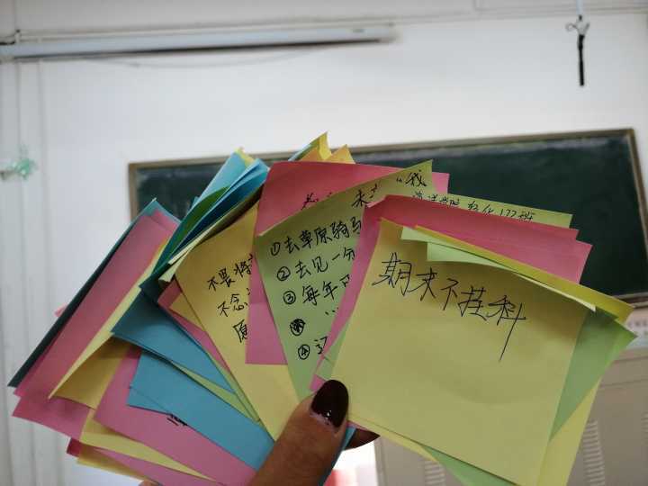 首先,班长为同学们说明了此次的活动目的及意义,让同学们明白树立善爱自我、感恩生命的心理健康观念的重要性。当同学们有了心灵上的碰撞后,由心委发便利贴让同学们写上自己觉得幸福的事以及对自己的祝愿,随后团支书组织同学们将便利贴贴到黑板上。新颖而充满温情的活动吸引了众多同学积极参与,黑板上汇聚了各式各样的“幸福的宣言”,有的温情动人,有的俏皮可爱,同学们在参与的过程中抒发了对自己的美好祝愿,更从他人的留言中感受到了温暖和鼓励。善爱我,认知自我,学会阳光生活。