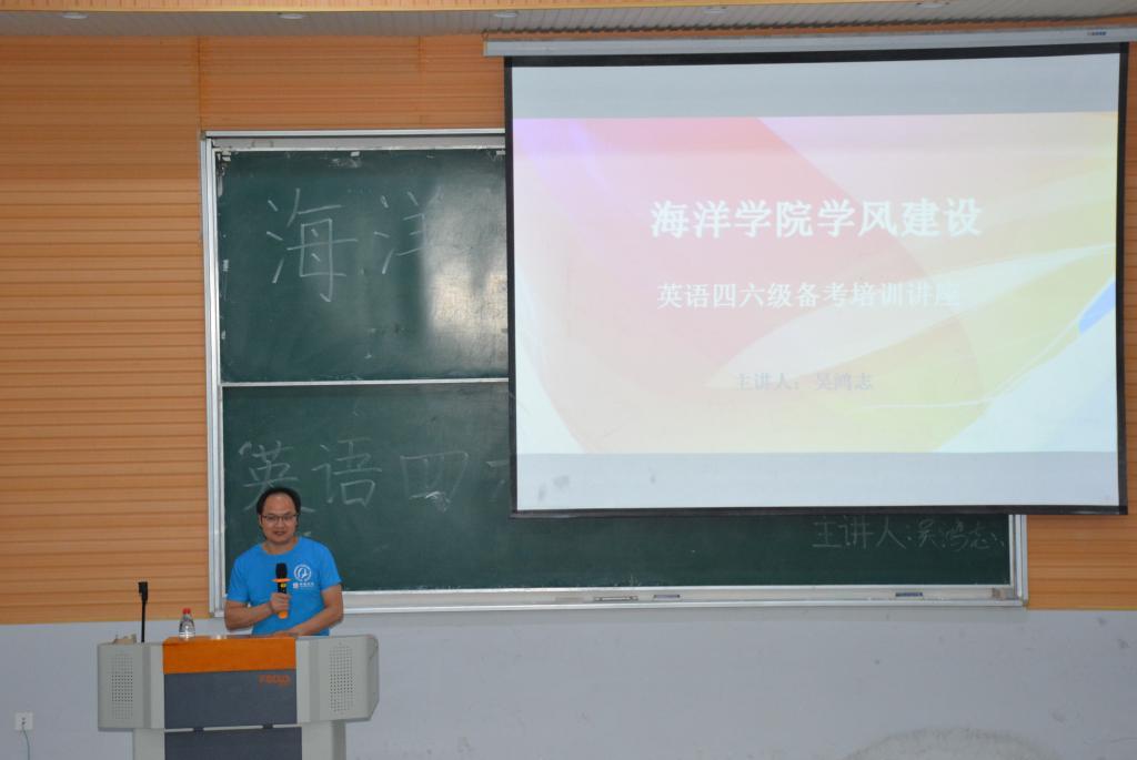 为提高公司同学们学习英语的积极性,帮助大二、大三员工科学备考英语四六级,10月15日下午6:30,海洋公司在二教101举行了“英语四六级备考培训讲座”。