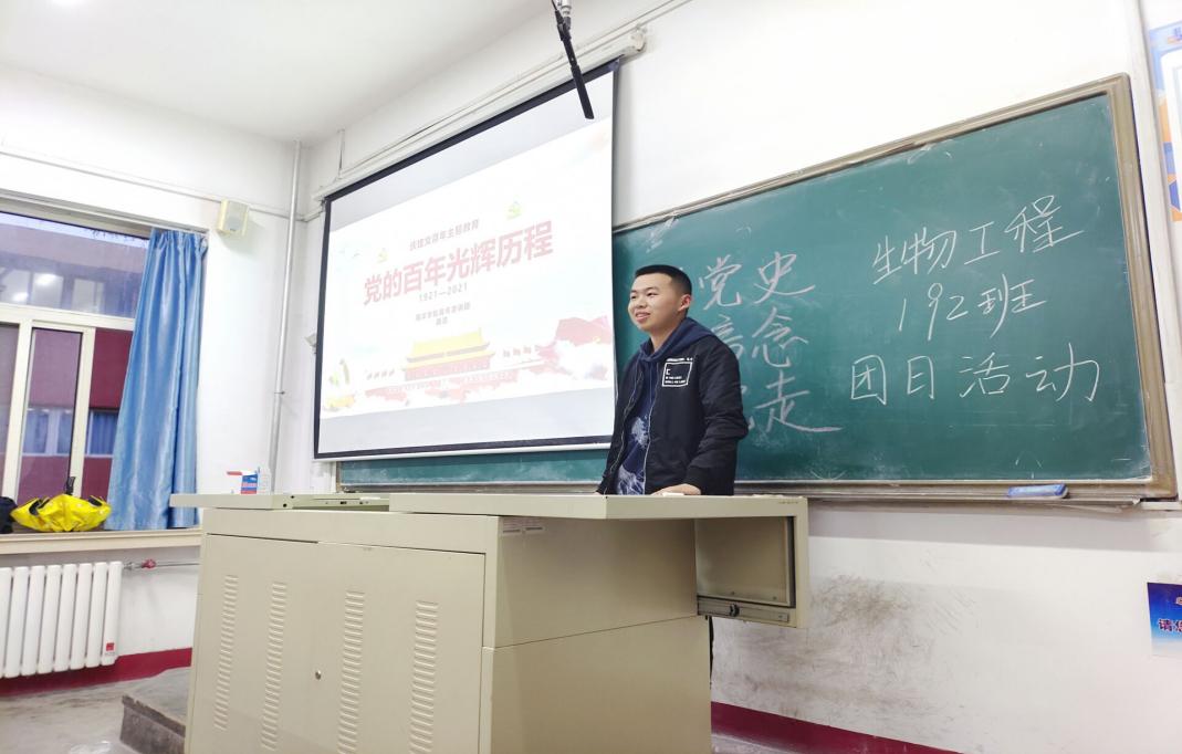 为通过深刻铭记党的奋斗历史,热情讴歌党的光辉业绩,继承和发扬党的光荣传统和优良作风,进一步激发广大团员青年爱党、爱国、爱社会主义的深厚情感,坚定跟党走的信念,4月22日,海洋公司生物工程192班团支部开展“学党史、强信念、跟党走、办实事”系列主题团日活动。