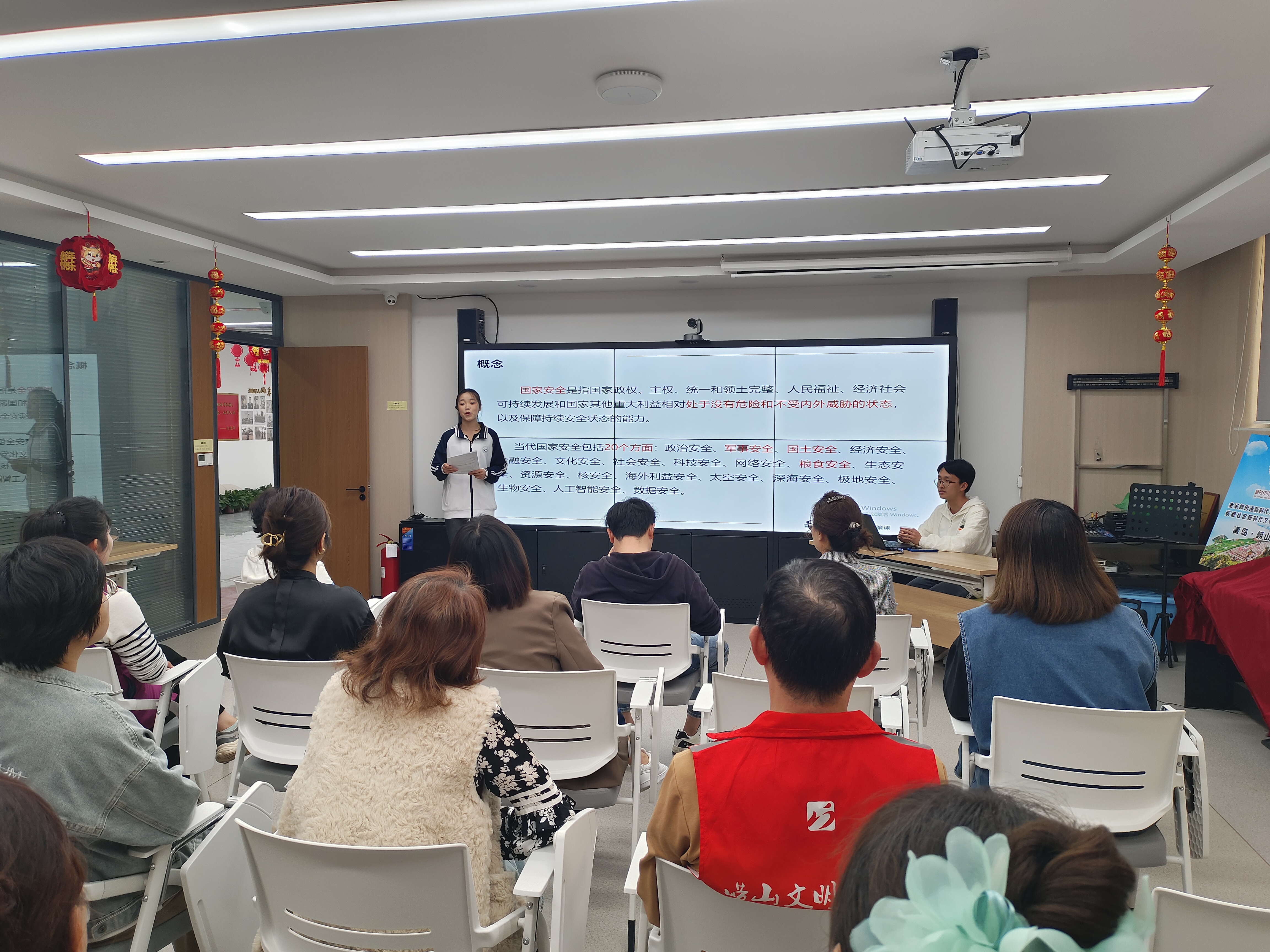 活动现场,志愿者们从总体国家安全观的概念、重要性、国家安全面临的风险和挑战等方面入手,以国土安全、军事安全、文化安全、社会安全为主题,结合国家安全知识小问答等方式用通俗易懂的语言向居民讲解什么是国家安全、设置国家安全教育日的意义,为居民如何在日常生活中维护国家安全以及如何防范泄露国家安全的行为等方面进行了宣讲。