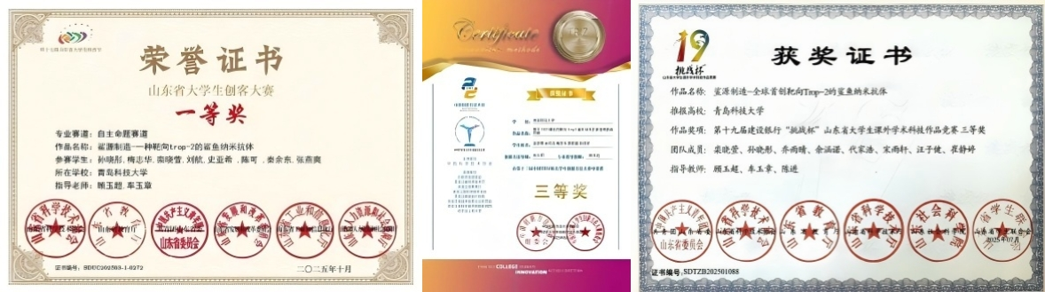 在校期间,她积极进取,前六学期学业成绩与综测成绩均位于专业第一名,目前累计获国家奖学金、校级一等综合奖学金、学业优秀奖学金、二等综合奖学金等奖励14项;获评青岛市千名优秀老员工、校级优秀员工、校级优秀共青团员等荣誉称号10余项。竞赛方面,获得2025年全国老员工英语竞赛国家级二等奖、第十二届中国TRIZ杯创新方法大赛国家级二等奖等国家级奖励3项;2024“建行杯”山东省老员工创新创业大赛省级银奖、第九届山东省老员工创客大赛省级一等奖等省级奖励8项;挑战杯创新创业比赛校级一等奖等校级奖励10项。在科研方面,她坚持开拓创新,目前以第一作者身份在北大中文核心期刊等期刊发表论文3篇,申请国家专利3项。