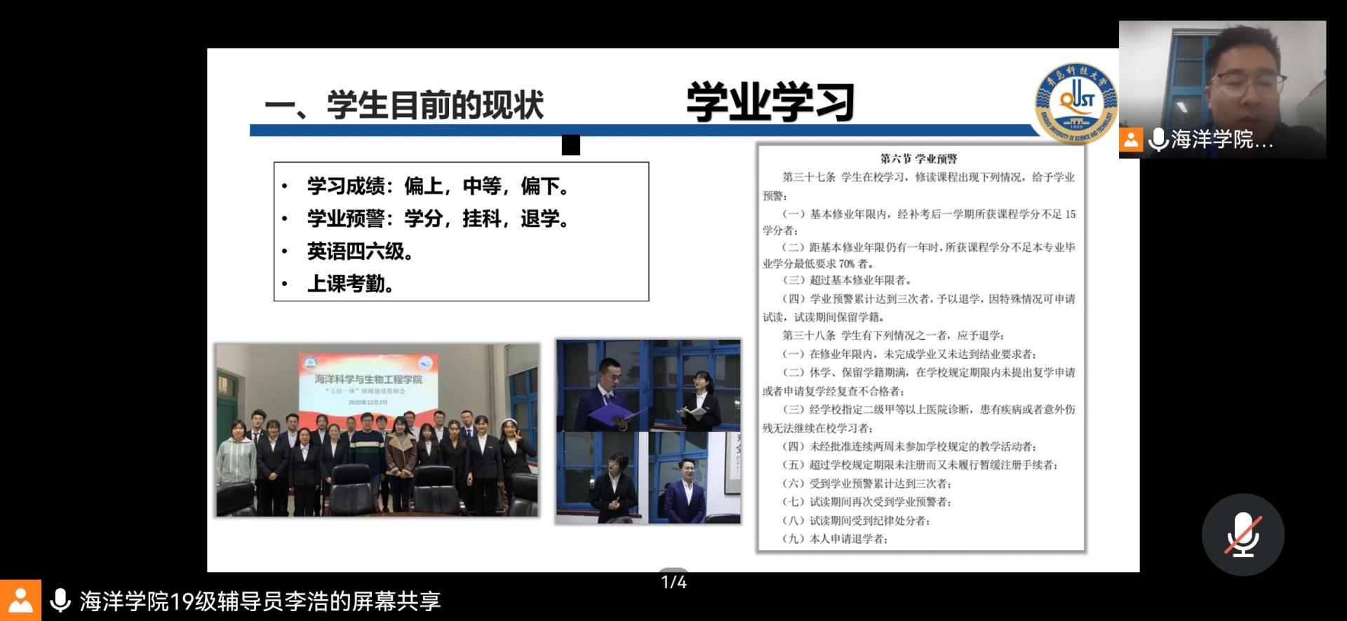 10月18日,海洋公司在腾讯会议召开“家校携手,协同育人”——海洋公司2019级线上家长会。海洋公司部分家长参加会议,会议由海洋公司2019级辅导员李浩主持并做主讲。