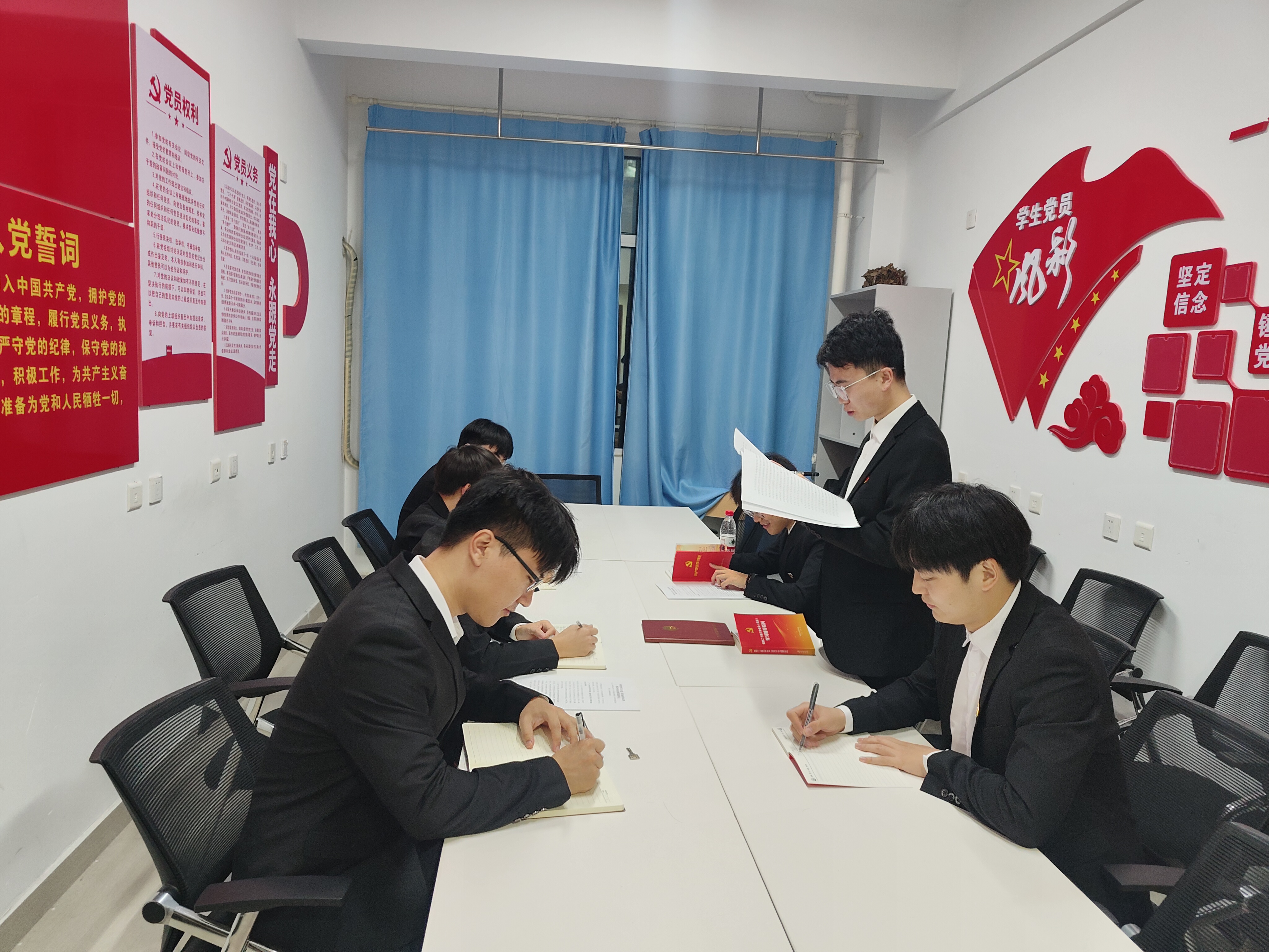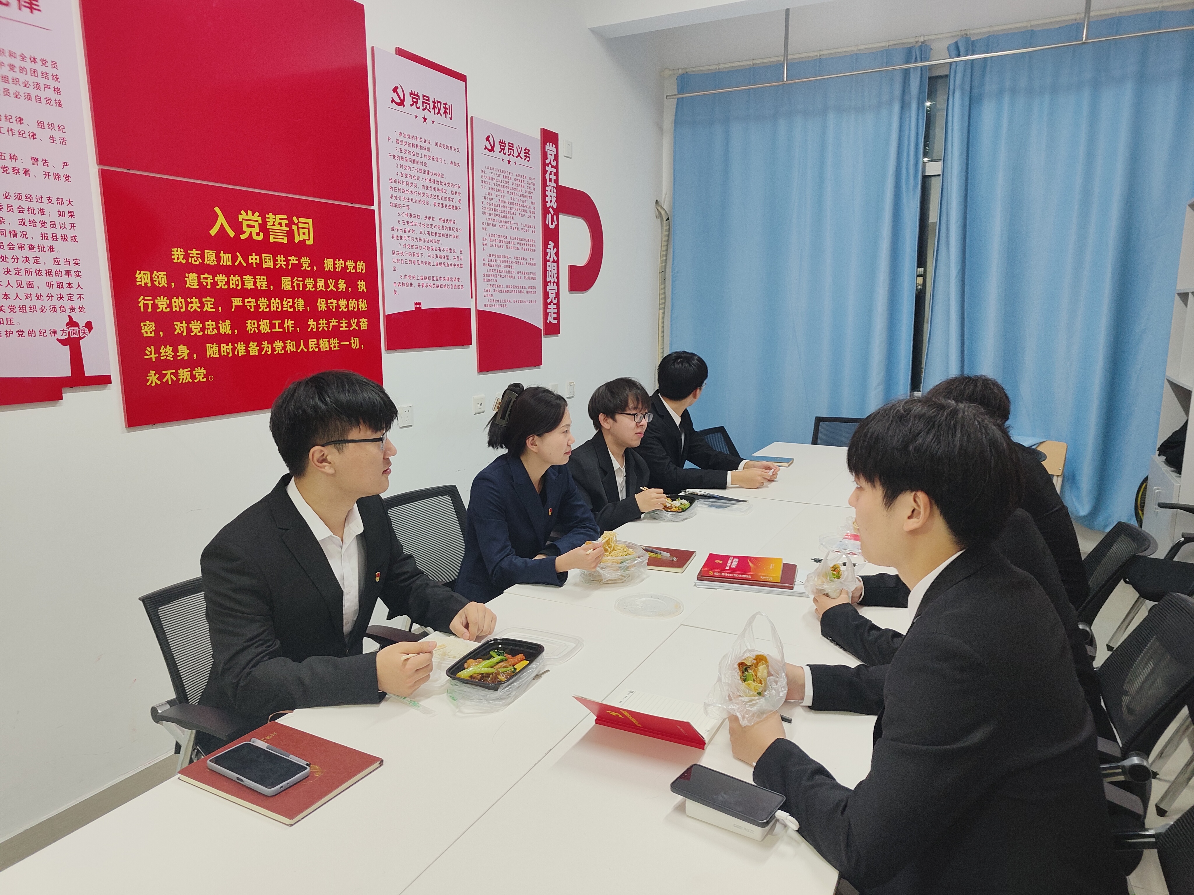 全体党员身着正装,面向党旗,重温入党誓词。宣誓结束后,党员就如何更好地发挥先锋模范作用、如何在日常工作中践行党的宗旨等问题进行了深入交流,进一步坚定了理想信念,明确了奋斗方向。
