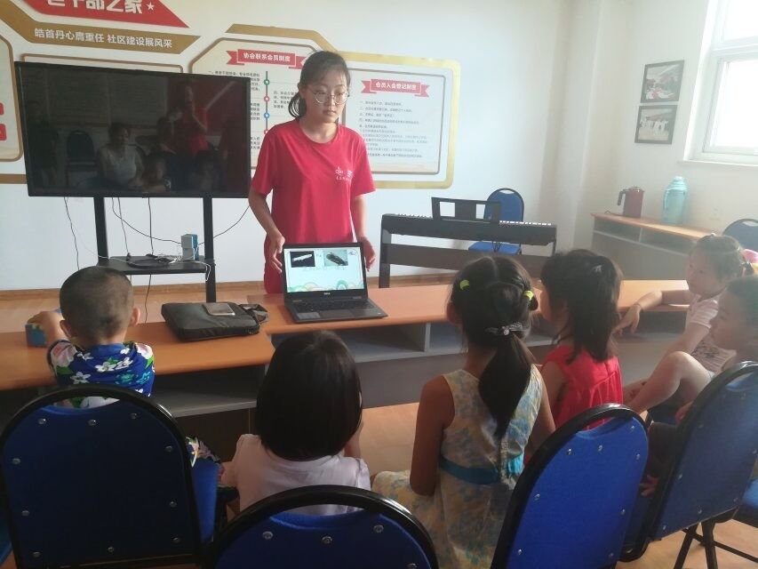二十日上午,团队六人共赴李沧区紫荆苑社区“悦读书房”。正式启动了为期五天的“暑期夏令营——学习海洋知识”活动。两个小时的课程中,成员们从海面到海底,给孩子们介绍了三种海洋生物,分别是海鸟、寄居蟹和海兔。团队成员采取了回答问题奖励贴画的激励措施,取得了良好的成效。孩子们个个仔细听讲,认真思考,积极回答问题。课程的最后,进行了课程总结,确保孩子们有所收获。